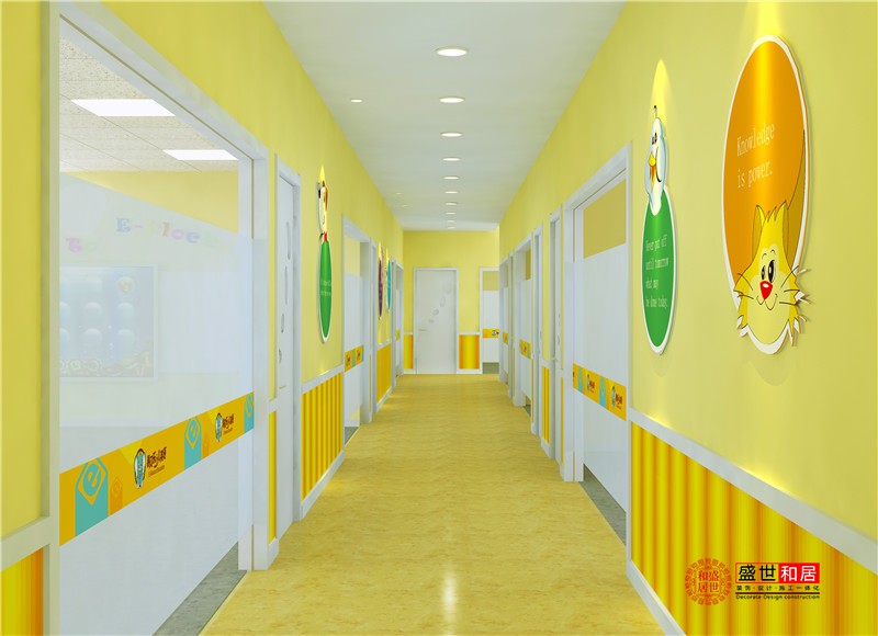本案為少兒英語培訓機構裝修設計效果圖,該培訓機構主要為少兒提供英語教育服務,我們在裝修設計時候要充分的考慮到孩子的年齡特點、喜好,同時也要裝飾得時尚且與英語主題有關才好,這樣才更符合少兒英語培訓機構裝飾的特點。故此設計師在教育培訓空間設計中,使用了明亮、歡快且具有濃厚動漫形式的色彩與設計風格,滿足少兒學習心理。