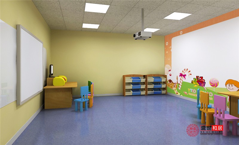 下圖為少兒英語培訓機構的裝修設計效果圖